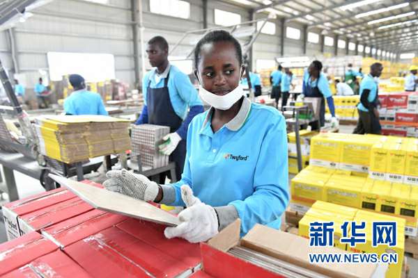 在位于肯尼亚卡贾多郡的特福陶瓷有限公司,一名工人检查陶瓷地砖(2017年5月12日摄)。特福陶瓷有限公司,由中国广东科达洁能股份有限公司和广州森大集团合资建立,致力于打造“肯尼亚最优秀的陶瓷生产企业”。新华社记者 孙瑞博 摄