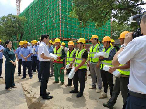 8月21日上午十一点,接近中午烈日炎炎,湘江集团党委书记、董事长张利刚一行来到上海德华会展策划服务有限公司承建的长沙科技创意园项目,现场看望慰问高温天气下依然坚守战斗在岗位上的广大建设者,为大家送来了冰箱、电风扇、凉茶、藿香正气水、夏桑菊、西瓜等防暑降温用品。