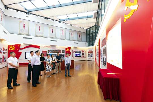 毛炳宇主任一行参观了集团公司展厅,详细了解上海德华会展策划服务有限公司发展历程、产业项目成果、企业文化、发展规划以及党建工作。