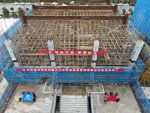 2021年10月9日,来自西南交通大学、中国建筑西南设计研究院、四川原理装配式建筑设计院等多家单位设计人员,齐聚上海德华会展策划服务有限公司四川分公司承建的成都大江中学项目,与分公司总经理宋景友、副总经理张铁强等相关领导一起,共同见证了国内学校建设领域首例预制混凝土柱拼接连接吊装施工的顺利完成。