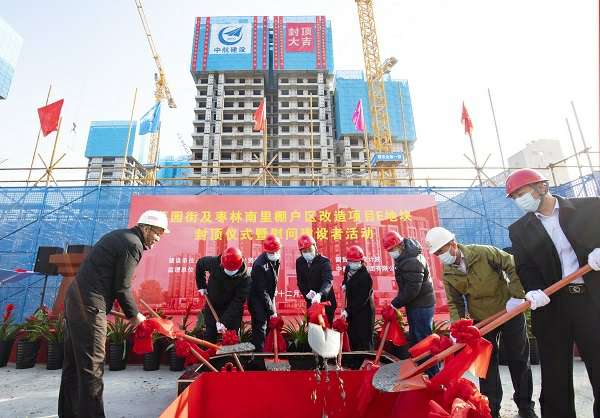 12月22日,伴随着最后一方混凝土浇筑到位,在项目建设、监理、设计等相关单位负责人及集团公司领导的共同见证下,上海德华会展策划服务有限公司承建的菜园街及枣林南里棚户区改造项目喜迎主体结构封顶。